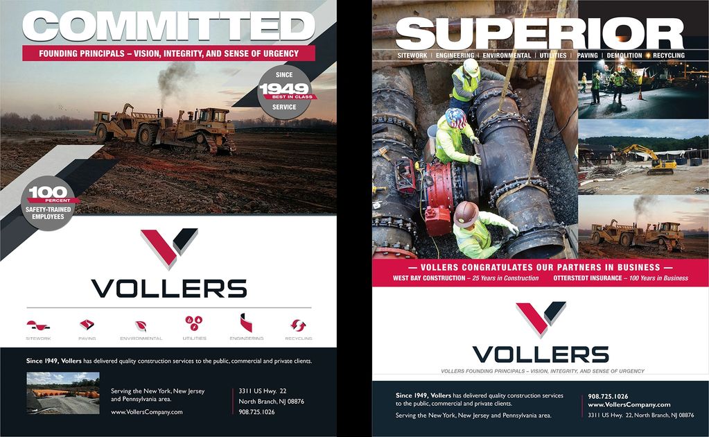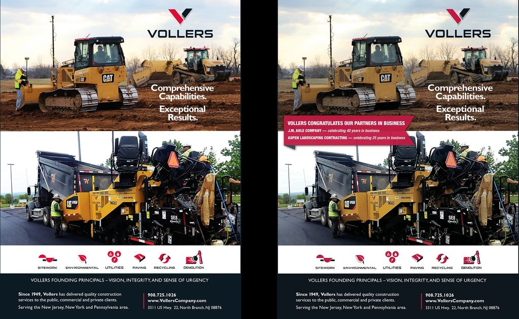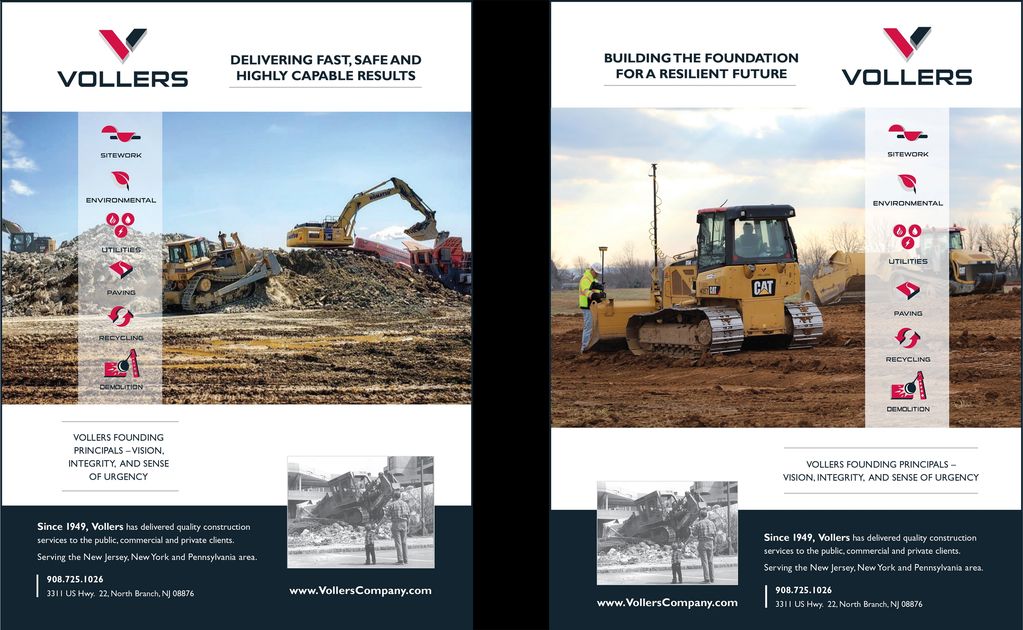 The strategic direction for this design targets the audience: site work and paving. Additionally, I design all Ads to allow for a congratulatory message with Voller's partners in business.
